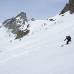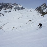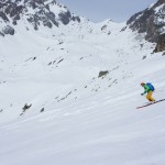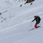 Seconde journée dans le Val Maira et la météo est toujours excellente offrant des conditions de ski de printemps parfaites. Cette fois-ci nous sommes allés en direction du « Campo de Base » au fin fond du Val Maira pour aller chercher une superbe pente de 600m à près de 40°.