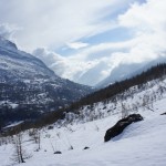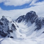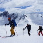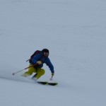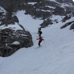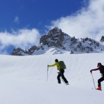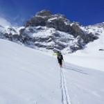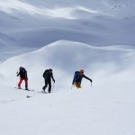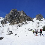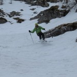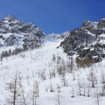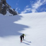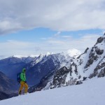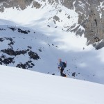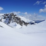 Troisième journée dans le Val Maira pour notre groupe et le réveil se déroula sous une légère pluie/neige à Acceglio. Du coup nous sommes partis 2 heures plus tard afin d’attendre l’éclaircie, qui arriva comme prévu. Le Mont Soubeyran est une course classique du coin mais elle offre un panorama incroyable tout au long de la montée, dans des paysages sauvages que je n’avais que rarement eu l’occasion de rencontrer. La descente se déroula une fois de plus sur une neige parfaite, les quelques centimètres tombés le matin même sur une couche parfaitement dure, un vrai bonheur pour n’importe quel skieur. Nous avons pris les couloirs N à la descente sous la Punta Bessie pour pimenter la fin de journée, encore une fois exquise dans ce coin de paradis pour randonneur qu’est le Val Maira. |
