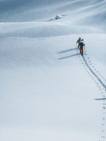 Les transports ont été en effet importants partout, un vent fort 💨 -15°, ressenti -1000° 🥶. Nous nous sommes dirigés en direction de deux sommets sans être allé au sommet en raison du risque d’avalanche. Nous avons faire plusieurs montées / descentes sous la Punta della Valle et le Monte Corbernas dans des pentes nord ouest toujours sous les 30°.