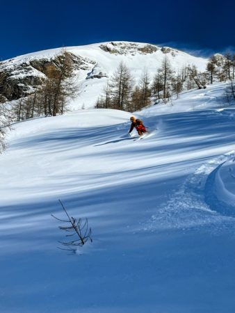 Les descentes dans les mélèzes sont restées très bonnes et nous avons passé une excellente journée dans cette vallée incroyable pour la rando.