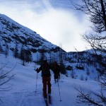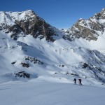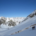 Première journée dans le Val Maira pour notre groupe. La météo est excellente, le regel fut parfait et la neige est encore plus que présente depuis le petit village de Preit où nous avons passé la nuit.