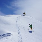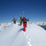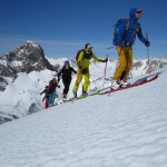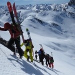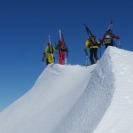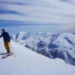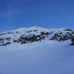 La pente SW se repère très bien lors de la montée, il est important de bien l’observer pour voir les sorties possibles selon les conditions. La montée s’est faite par l’arête, une superbe marche en crampons sur un sommet très esthétique.