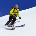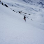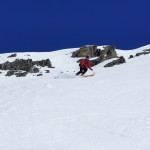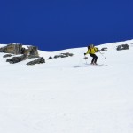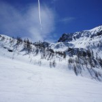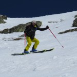 La descente en pleine face SW fut excellente en neige de printemps parfaitement revenue ! Une excellente entrée en matière dans le fameux Val Maira italien.