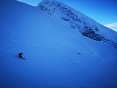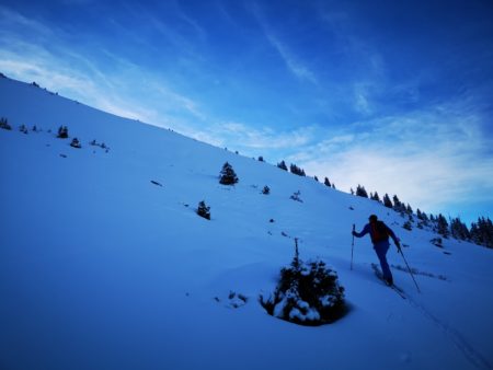 Après une petite chute de neige dans la nuit, nous tentons la pointe de merdassier car nous cherchions une course efficace et peu emprunté. Ce fut la bon choix, nous avons tracé toute la montée et même si le départ ne nous laissait pas entrevoir une journée remplie de poudreuse, les conditions étaient rapidement bonnes au dessus de 1600m avec 10-15 cm de neige fraîche.
