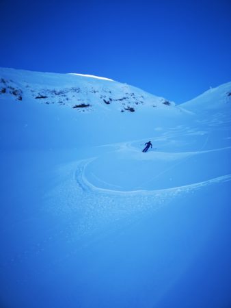 La descente fut excellente du haut en bas, de belles grandes courbes dans la combe centrale. Une belle matinée dans les Aravis.