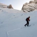 Depuis le départ des bennes, rejoindre la combe du Fernuy (combe très caractéristiques sous les télécabines). Lorsque la station est ouverte, cette combe est en fait une piste que l’on rejoint facilement. Remonter la combe, puis vers 1750m tirer à gauche afin de rejoindre une brèche et ainsi le bas de la combe de la Creuse. Arrivé au bas de la Creuse, la Porte des Aravis est le col très caractéritique entre deux falaises. On y monte rive gauche. ** La légende raconte que lors de sa traversée des Alpes, Gargantua trébucha sur la chaîne des Aravis. Énervé, il donna un grand coup de pied dans la montagne. La Porte des Aravis était née. Le pic rocheux qui s’en détacha atterrit alors dans le massif du Beaufortain : la Pierra Menta était née… ** Descente Même itinéraire qu’à la montée. Remarques Il est préférable de faire cette course en début/fin de saison lorsque la station de la Clusaz n’est pas encore ouverte. Cependant, lorsque la station est ouverte la combe du Fernuy est une piste, certes pentue, mais facile à remonter car damée. Pour éviter de croiser des skieurs, il est conseiller d’arriver au moment de la bifurcation à 1750m vers 9h30. |