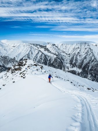 Montée Depuis le sommet des remontées de Prali, monter en direction du Capello d’envie et suivre l’arête évidente jusqu’à une faiblesse qui permet de descendre dans la combe sous la Punta Funset. Au fond de la combe, suivre le chemin d’été puis monter les pentes évidentes jusqu’au sommet de la Cimma delle liste ou Punta Gardetta. Variantes : Descente Attention à ne pas partir dans le vallon en bas à gauche mais bien prendre main droite pour rejoindre le village. Il est possible de descendre jusqu’à Prali à ski. |