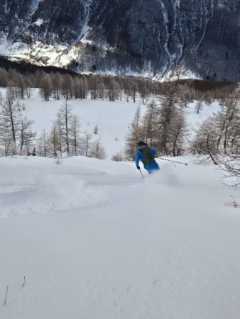 Malheureusement la météo nous a posé un joli lapin et le retour d’est n’a pas eu lieu, seuls 10cm de neige étaient tombés. Malgré cette petite désillusion, nous avons découvert le très grand potentiel de cette station perdue dans la vallée de germanasca.