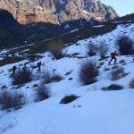 Chemin inverse par rapport il y a deux jours, mais nous décidons de descendre à ski la vallée depuis le refuge. Du coup Xavier nous a offert du ski rock’n’roll au bord d’un torrent. Petits passages, désescalade à skis, petits sauts de rivière pour notre plus grand plaisir, le tout dans des paysages toujours aussi magnifiques.