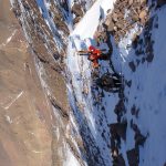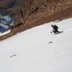 Ce sommet s’atteint par une combe qui mène à un col vers 3900m d’altitude. De ce col une arrête très simple conduit au sommet par un immense pierrier (ou une grande pente en neige mais on ne l’a pas vue !). Nos skis sont restés à cette altitude car il n’y avait donc pas de neige, le vent avait tout emmené avec lui.