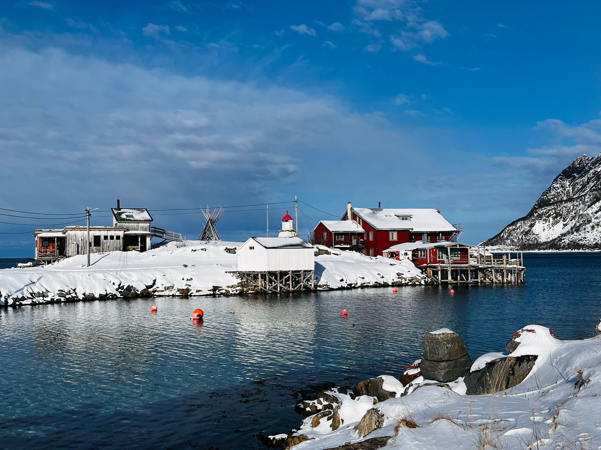 Après avoir atterri à Tromsø, nous avons pris la route pendant près de 3h15 pour rejoindre l’île. Certes ce n’est pas très éloigné de Tromsø à vol d’oiseau mais les routes ne sont pas simples avec les nombreux fjords et montagnes dans cette région.