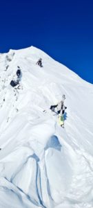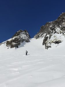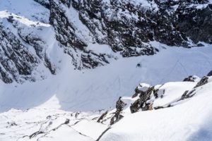 Au sommet nous rencontrons un couple de Suisso-Tchèque très sympa avec qui nous échangeons quelques mots. Ils prennent également quelques photos et vidéos avec leur drone. Ils nous laisseront skier le couloir en premier et nous filmerons lors de notre descente. Les images sont magnifiques, je vous laisse juger.