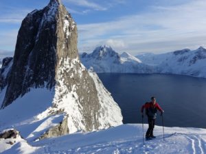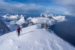 L’île de Senja est moins connue que la région des Alpes Lyngen et des îles Lofoten qui l’entourent au nord et au sud. Depuis deux décennies maintenant, les voyages à ski de rando en « ski bateau » ont connus un certain essor auprès des randonneurs à ski des quatre coins du monde. Cette destination est devenue en quelques années un spot prisé pour celles et ceux dont la passion de la rando les poussent à voyager au delà de leur massif habituels.