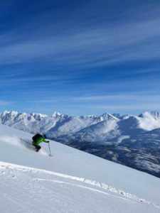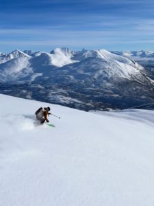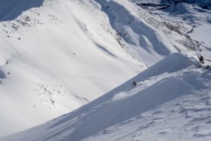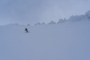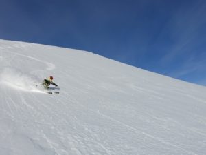 1200m de dénivelé dans un froid polaire qui nous a saisi tout au long de la journée. Du sommet, le panorama est incroyable avec une vue à 360° sur d’innombrables sommets. La neige est très froide et légère et notre dernière descente ressemble pour beaucoup à la plupart que nous avons vécues toute la semaine.