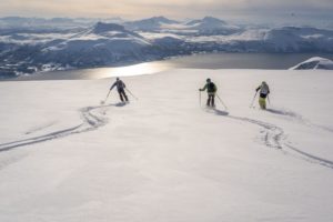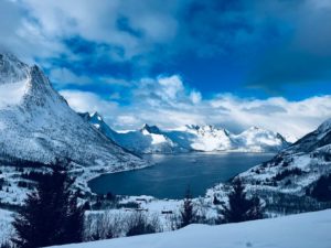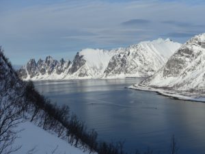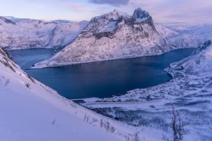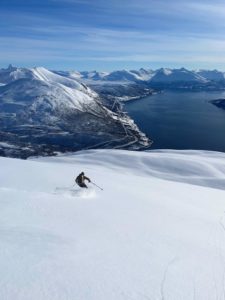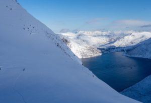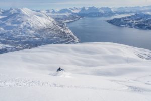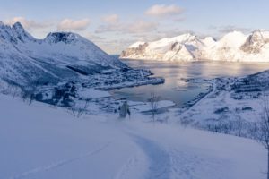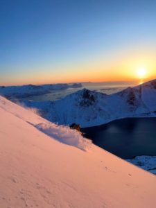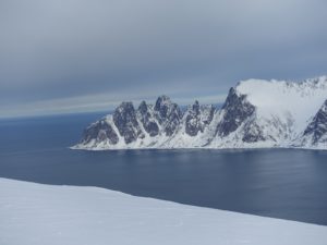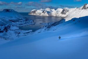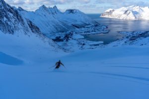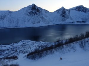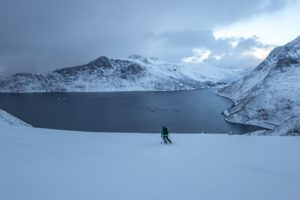 Nous avons choisi ces deux lieux en raison de leur emplacement. En effet les spots à ski sont nombreux mais deux grands secteurs regroupent les principales courses sur l’île. Un premier secteur se situe sur la partie Nord-Est, avec de longs fjords autour de Senjahopen, l’une des principales villes (ou plutôt gros village) qui composent l’île. Puis un second secteur, plus sauvage et moins facile d’accès, situé au Sud en direction du « Anderdalen Nationapark« . Nous avons cependant privilégié le Nord car les possibilités y sont incroyables !