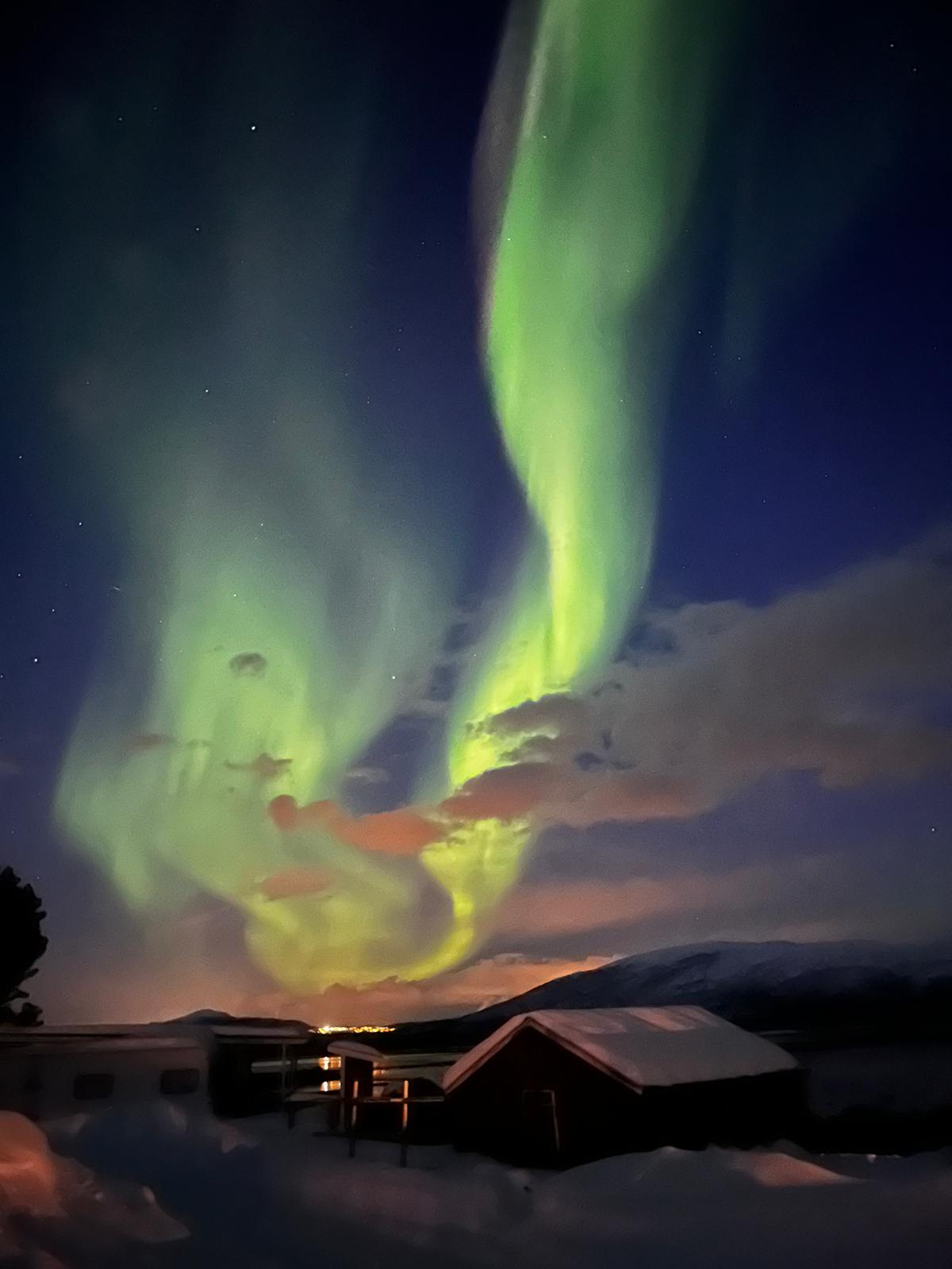 Nous prenons la route après cette journée extraordinaire de la veille, sous des tonnes d’aurores boréales. Le ciel est complètement dégagé mais un froid vif (-20°c) nous accompagne jusqu’au Norwegian Wild camping où nous nous rendons pour nous poser les derniers jours.