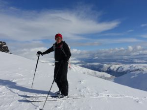 Au sommet, nous sommes rejoins par une norvégienne d’une soixantaine d’années, hyper sympa et très en forme ! Nous entamerons la descente dans une neige parfaite de haut en bas, pouvant laisser filer les skis. Notre rencontre norvégienne nous suivra jusqu’en bas, à un rythme que je serai heureux d’avoir à son âge, chapeau madame !