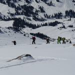 Notre guide Xavier a déjà expérimenté ces neiges depuis une semaine avec un autre groupe, un excellent moyen pour lui d’avoir pu observer la neige sous toutes ses coutures. Bizarrement nous n’aurons jamais vu de très gros départs d’avalanches ou de grosses fractures, mais plus des avalanches de surfaces naturelles (ou sluffs) qui purgent les pentes les plus raides. Nous n’irons cependant jamais titillés des pentes raides en face nord, ayant bien de quoi faire ailleurs sans prendre de risque inutiles.