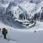 Venir skier au Kirghizistan c’est donc aimer les neiges froides, c’est accepter de s’adapter aux contraintes de l’instabilité d’un manteau neigeux qui peut s’avérer complexe, c’est aimer découvrir des pentes sans la moindre aide d’une carte de moins de 1:100’000, c’est apprendre à rencontrer des populations qui aiment vivre dans ce milieu continental froid et sec, c’est enfin avoir les yeux qui brillent devant les paysages d’un pays où tout est montagne…