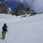La fin se déroula sur un tapis de neige de printemps jusqu’au pied du Mont Collon avec un portage final dans la moraine pour rejoindre le chemin et les voitures.