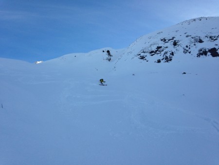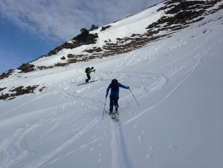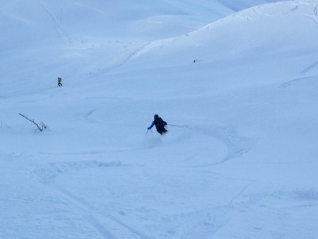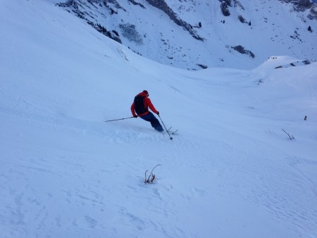 Une petite sortie vers les sources du Fier, bel endroit toujours très sauvage. La qualité de neige était présente et cela restait correct comme ski avec de la poudre dans une bonne partie de la descente. Nous nous sommes arrêtés au col car l’arrête était bien sèche avec des corniches en mauvais point et une face Ouest très peu enneigée, le manque de neige de ce début de saison a fait son effet. Malgré cela la descente fut excellente. |