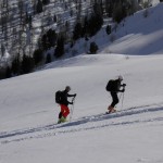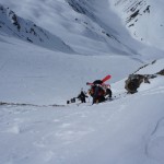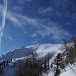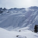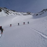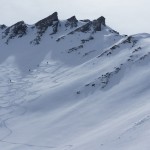 Troisième et dernière journée de notre périple dans le secteur des trois micro-stations de Champex/Vichères/La Fouly. Cette fois-ci nous sommes parti de la Fouly pour monter en direction de la Dotse, qui est une grande classique du coin. Cependant une fois au sommet, tous les randonneurs se dirigent habituellement vers la Tête Ferret pour effectuer la boucle classique. Nos guides ne voulaient décidément pas nous offrir du ski « classique » et ils nous firent basculer en face Sud en direction du vallon de la Peule. Une moquette parfaite nous attendait pour cette première descente de la journée. Nous avons repeauté pour ensuite monter la très esthétique combe NE du Six Blanc. Une neige parfaite nous attendait encore. Vers 2600m, nous avons décidé de mettre les skis sur le sac et de monter un couloir pour rejoindre par un col à 2663m, l’arrête menant au sommet. Une fois l’arrête atteinte, nous avons découvert les magnifiques pentes NO vierges, qui n’attendaient que le passage de nos skis. Nous avons donc basculé dans les pentes des Grands Creux et avons skié une neige excellente sur près de 700m, dans des pentes régulières en neige froide et légère. La boucle était bouclée en arrivant en bas vers les voitures, après une longue glissade jusqu’au parking. La fin de trois journées exceptionnelles dans la région du Valais entre Champex, Vichères et La Fouly. Un seul mot à retenir, merveilleux. |