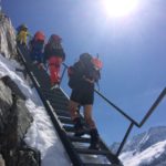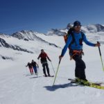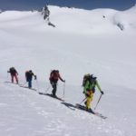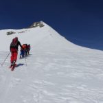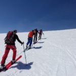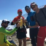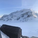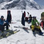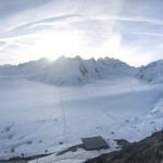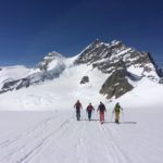 Nous nous dirigeons rapidement vers le Monchjoch puis descendons l’Ewigschneefäld. C’est à ce moment que nous décidons de partir pour l’ascension du Trugberg car l’horaire est encore et qu’une très belle pente soutenue à skier nous serait offerte. Mais il faut accélérer pour skier le bon horaire, nous accélérons le rythme et l’altitude se fait très vite sentir dans les jambes. Notre arrivée sur l’arête en neige fut parfaite niveau timing. Nous ne sommes pas allés au sommet car il commençait à être tard et nous voulions profiter du ski (arête facile pour le sommet). La descente est soutenue surtout sous le sommet avec une belle pente. Le reste de la descente l’est tout autant, la neige était parfaitement décaillée. Ensuite nous avons rejoint Konkordiaplätz puis la Konkordiahütte, où les 150m d’escaliers viennent achever cette longue journée. La bière sur la terrasse fut grandement méritée et appréciée devant ce panorama unique ! |