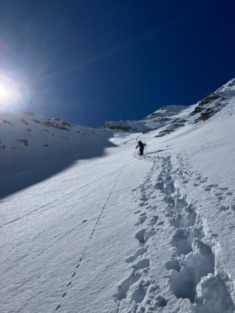 Voilà plusieurs années que je traîne mes skis dans la région d’Arolla et que les fameux couloirs de Tsena Refien me faisait de l’oeil. Pas toujours les bonnes conditions, d’autres courses de prévu, bref il fallait bien arriver à monter dedans un jour.